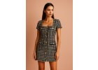 Vzorovaný dvojdielny outfit s viazaním, dovolenková nálada a prútená kabelka.
