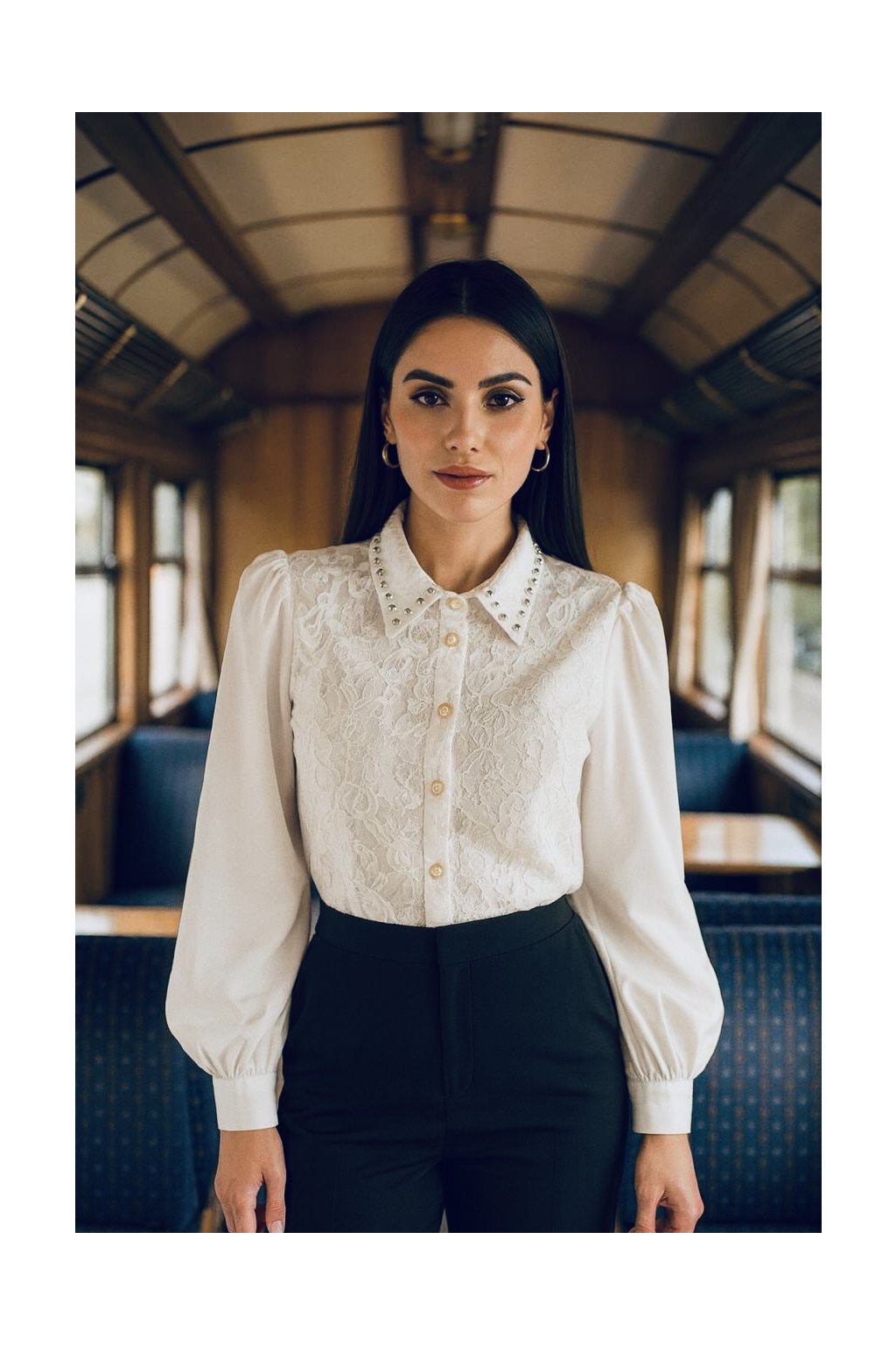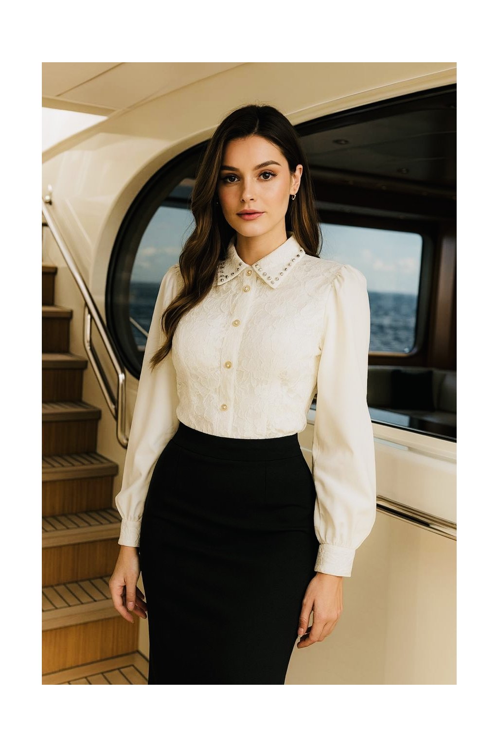 Elegantná čipkovaná blúzka s perlovými detailmi