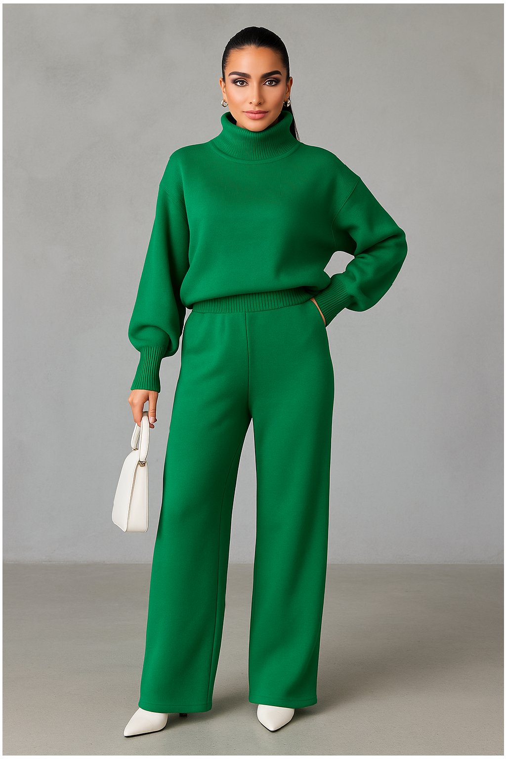 Luxusná zelená dámska tepláková súprava s voľným strihom a vysokým pásom